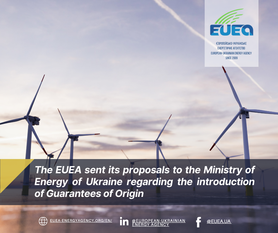The EUEA sent its proposals to the Ministry of Energy of Ukraine regarding the introduction of Guarantees of Origin