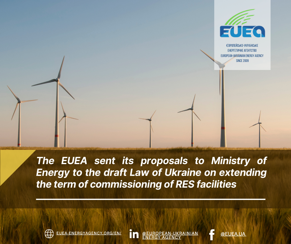 The EUEA sent its proposals to Ministry of Energy to the draft Law of Ukraine on extending the term of commissioning of RES facilities