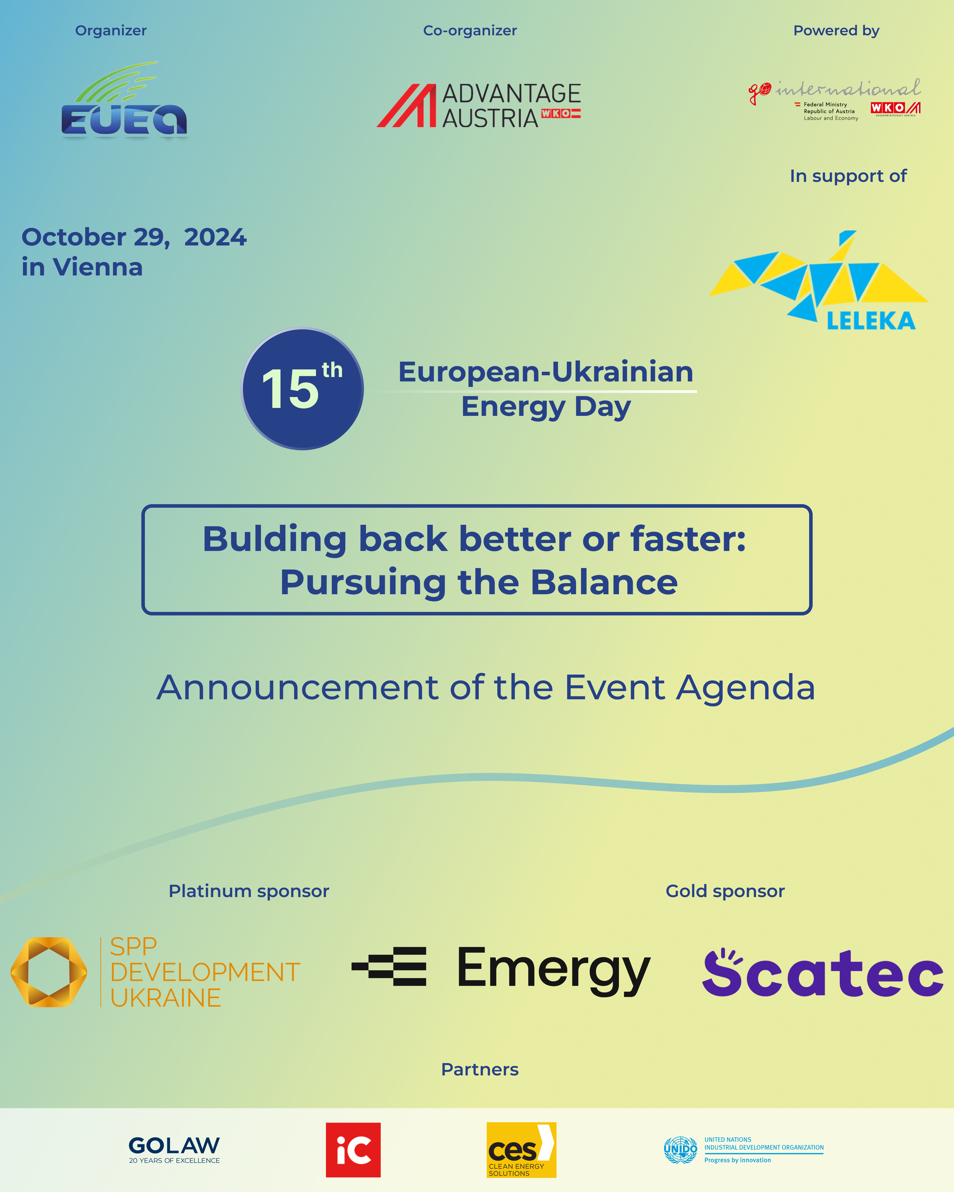 On October 29th, the 15th European-Ukrainian Energy Day will take place in Vienna, which holds special significance this year as it coincides with the 15th anniversary of EUEA. We are organizing this year’s event in Vienna thanks to the support of our partners WKO and Advantage Austria.