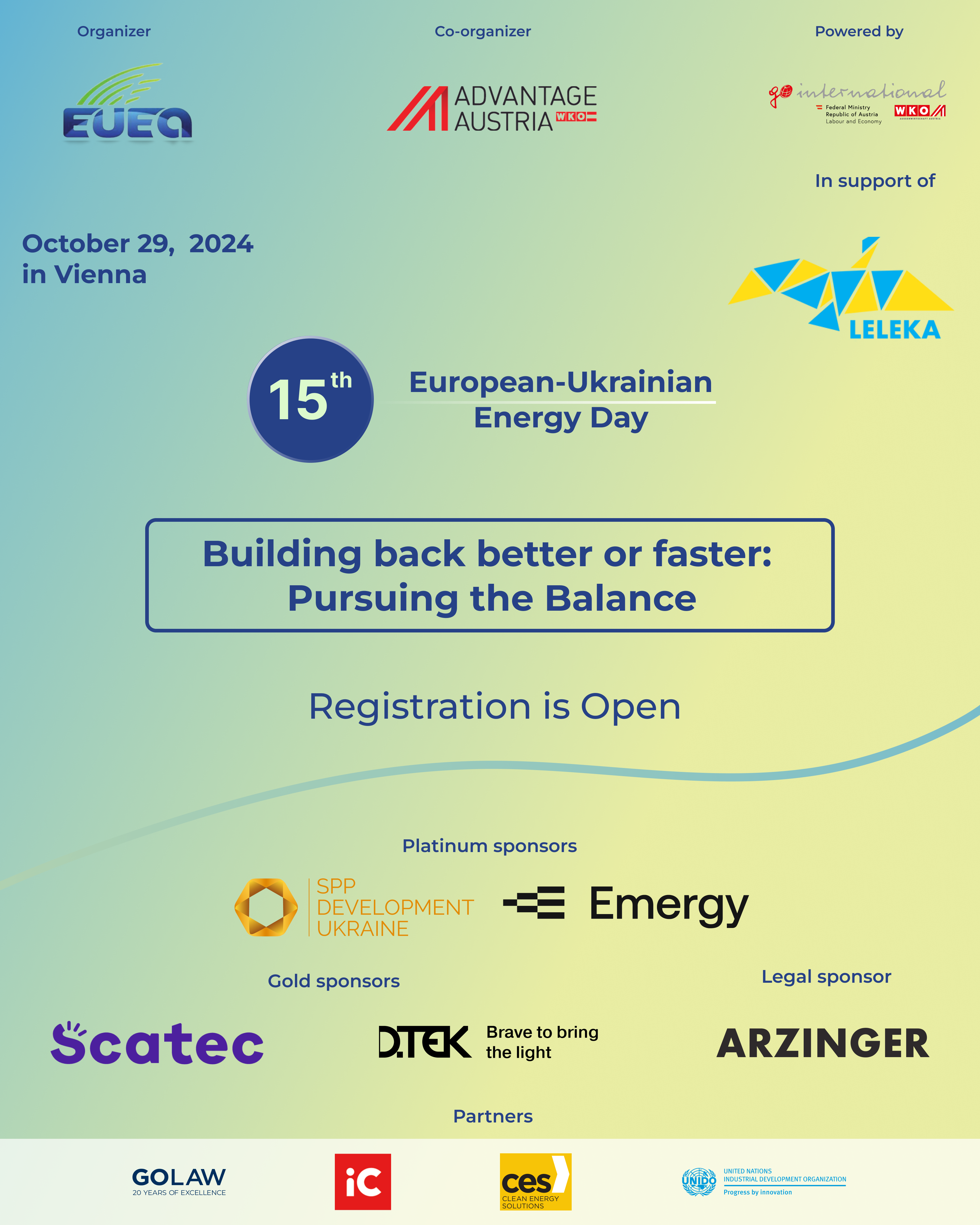 EUEA announces the opening of registration for the 15th European-Ukrainian Energy Day, which will take place on October 29 in Vienna!