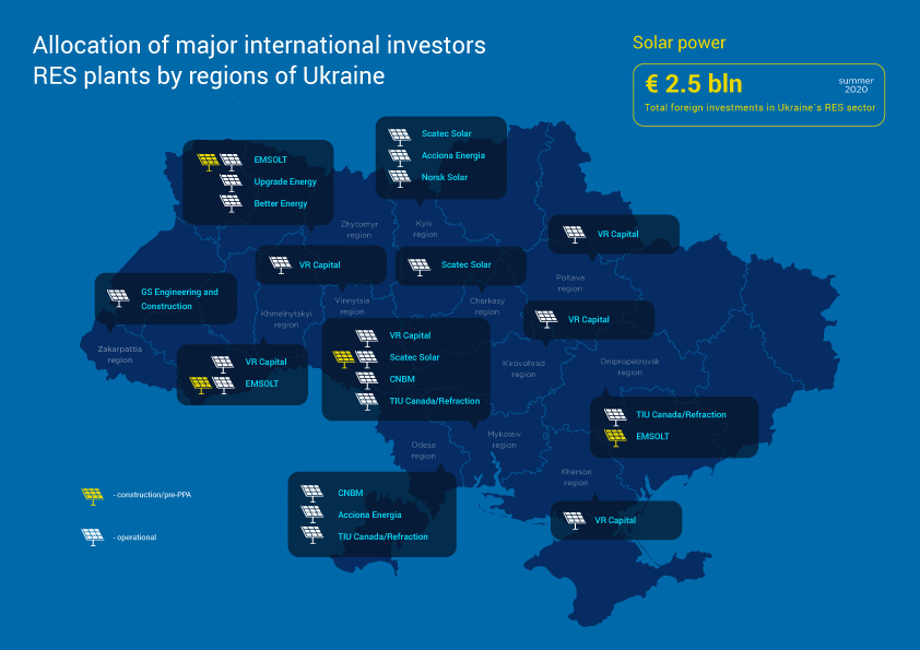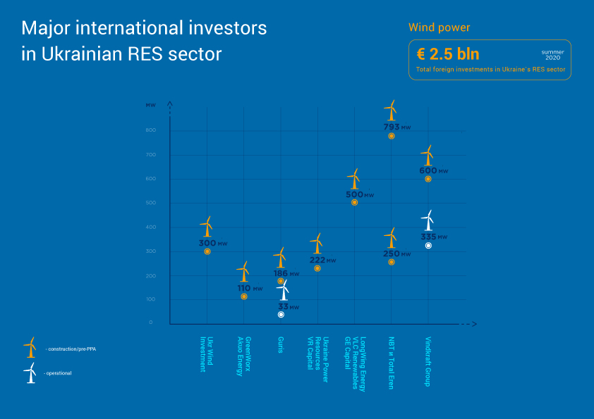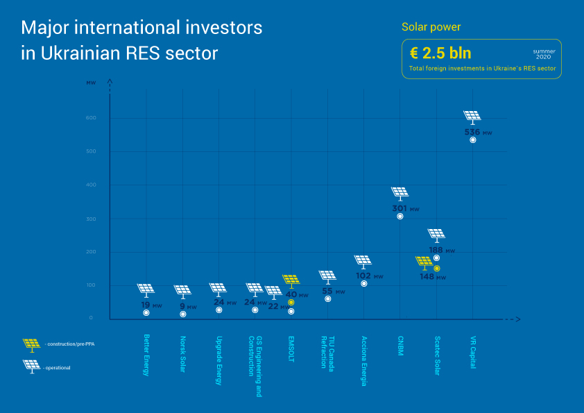 According to our estimates, as of the summer of 2020, the share of foreign investors in the installed capacity of renewable energy plants will be more than 30%, which will almost double the share of DTEK, and the size of the corresponding investments will reach EUR 2.5 billion.