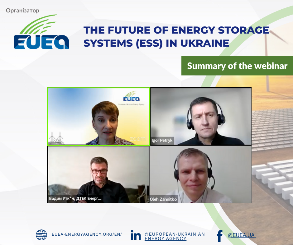 On March 2, the European-Ukrainian Energy Agency (EUEA) held a round table on the topic “The future of energy storage systems (ESS) in Ukraine”. During the discussion, the following issues were considered: the existing legislative framework of ESS, international practices of ESS implementation and recommendations for Ukraine, as well as practical experience of installing batteries in Ukraine.