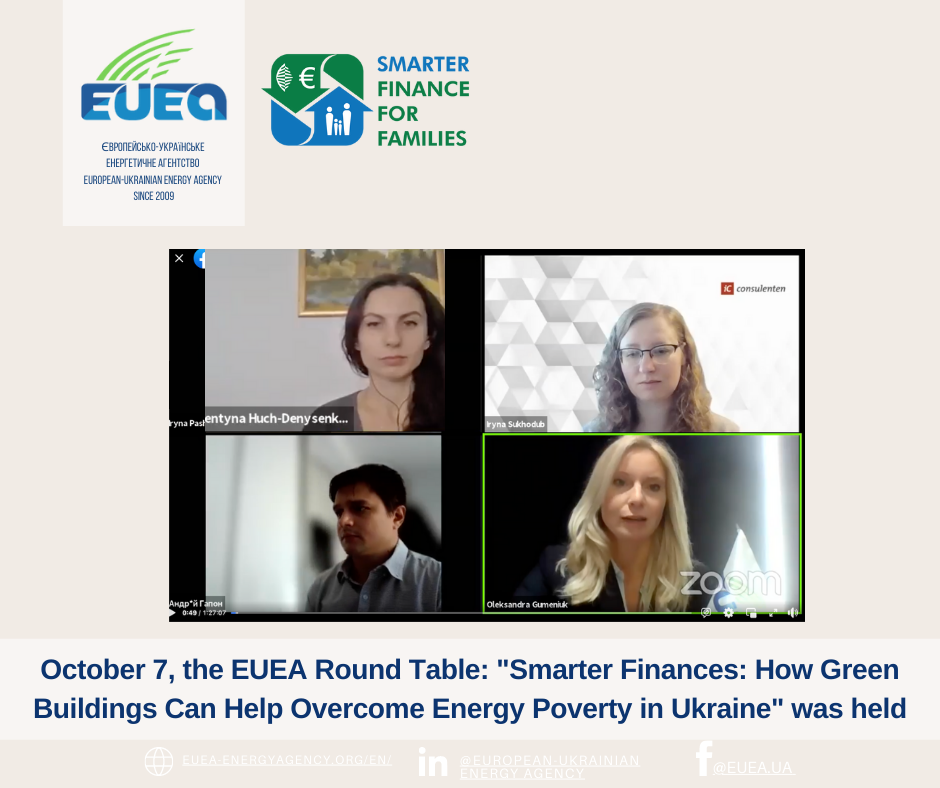 Yesterday, October 7, the EUEA Round Table: “Smarter Finances: How Green Buildings Can Help Overcome Energy Poverty in Ukraine” was held.
