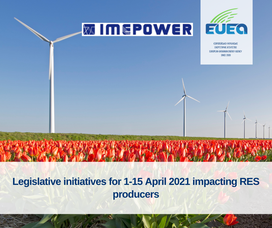 The EUEA Energy Advisor – IMEPOWER has prepared the Legislative initiatives for 1-15 April 2021 impacting RES producers.