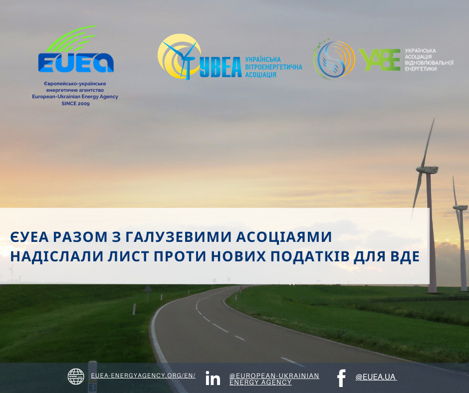 ЄУЕА разом з галузевими асоціаями надіслали лист проти нових податків для ВДЕ