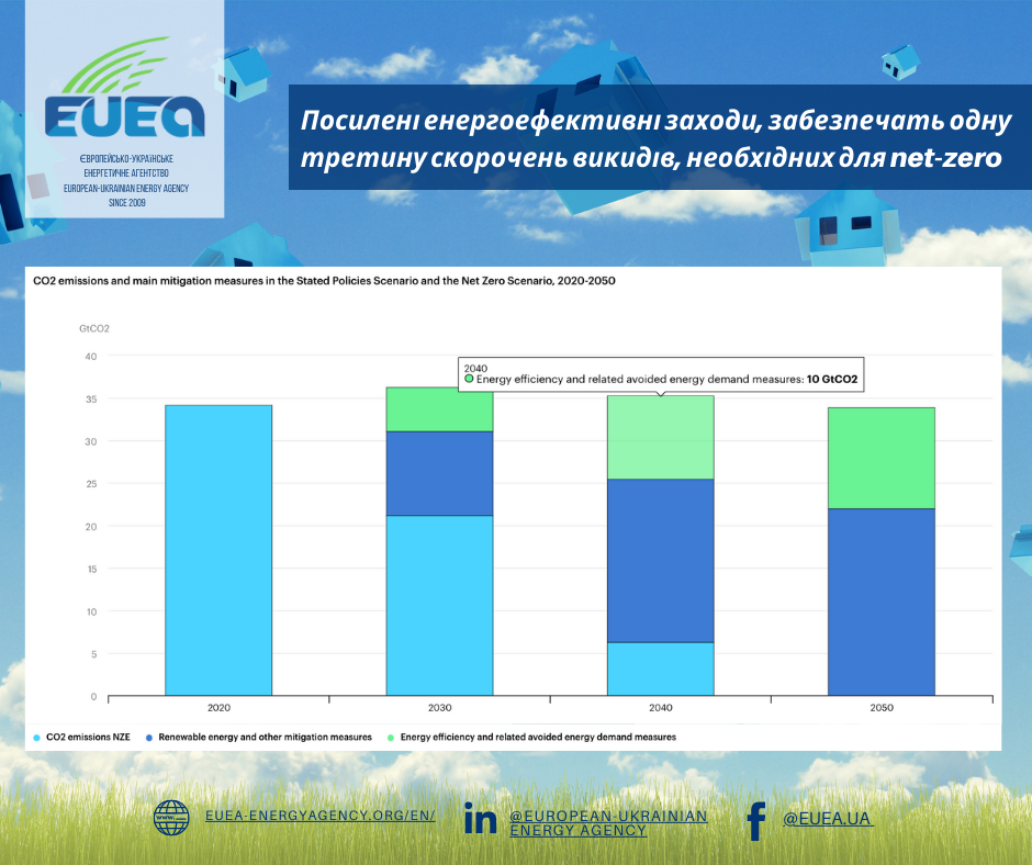 Посилені енергоефективні заходи, забезпечать одну третину скорочень викидів, необхідних для net-zero