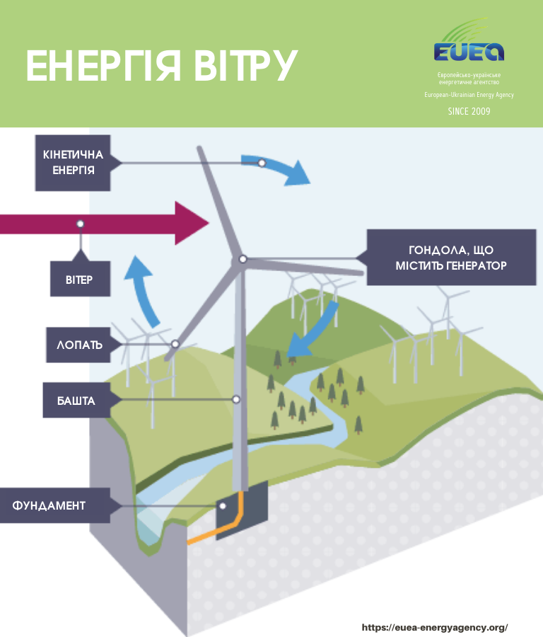 Вітер утворюється в результаті гігантських конвекційних потоків в атмосфері Землі, які рухаються тепловою енергією від Сонця. Це означає, що кінетична енергія вітру є відновлюваним енергетичним ресурсом – поки Сонце існує, вітер теж буде існувати.