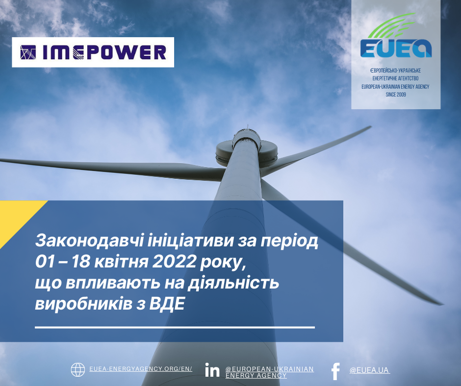 Законодавчі ініціативи за період 01 квітня – 18 квітня 2022 року, що впливають на діяльність виробників з ВДЕ