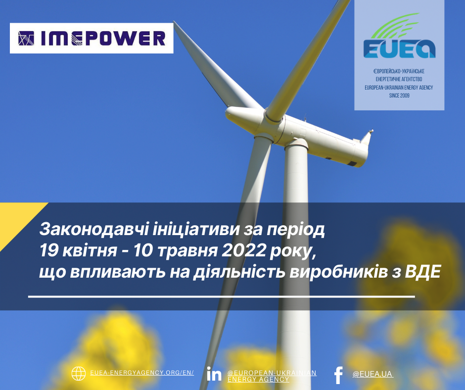 Законодавчі ініціативи за період 19 квітня – 10 травня 2022 року, що впливають на діяльність виробників з ВДЕ