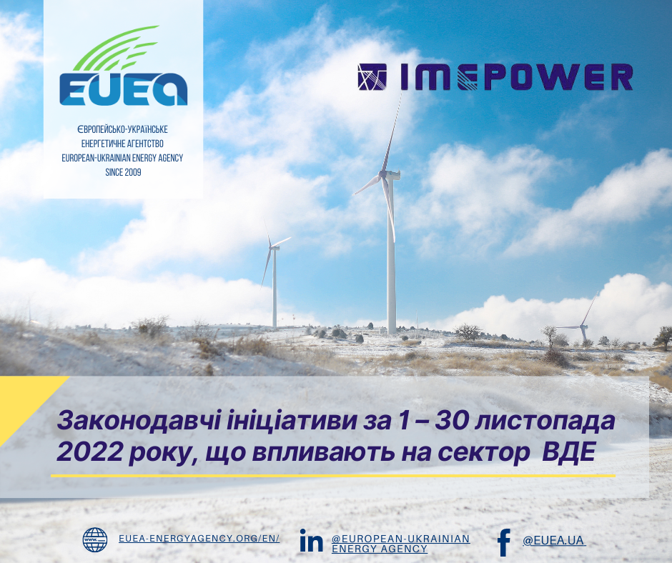 Законодавчі ініціативи за період 1– 30 листопада 2022 року, що впливають на діяльність виробників електричної енергії з ВДЕ