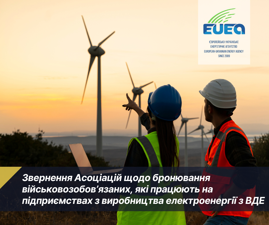 Звернення Асоціацій щодо бронювання військовозобов’язаних, які працюють на підприємствах з виробництва електроенергії з ВДЕ
