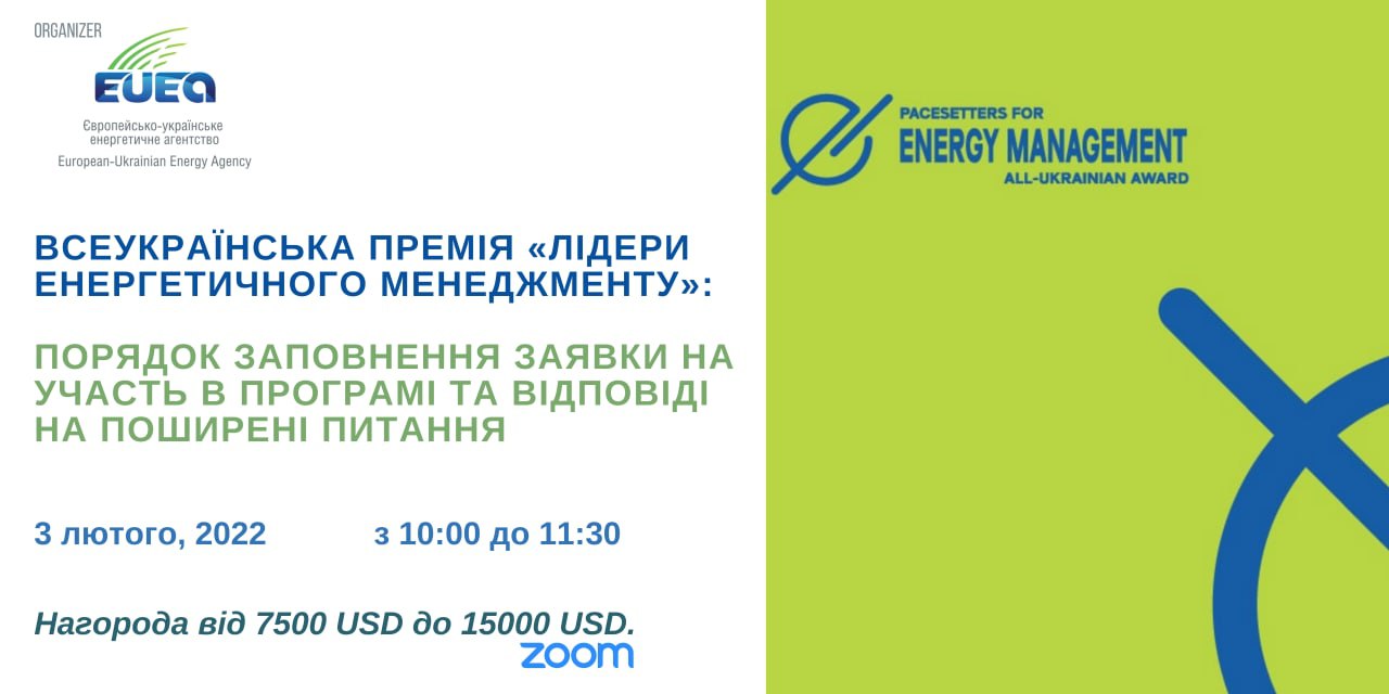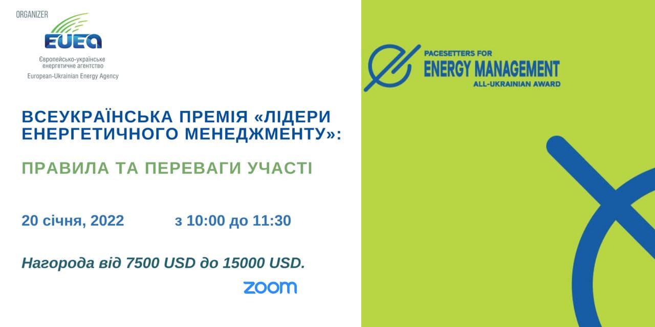 Відбудиться онлайн-вебінар «Премія «Лідери енергетичного менеджменту»: правила та переваги участі для підприємств», 20 січня 2022 р