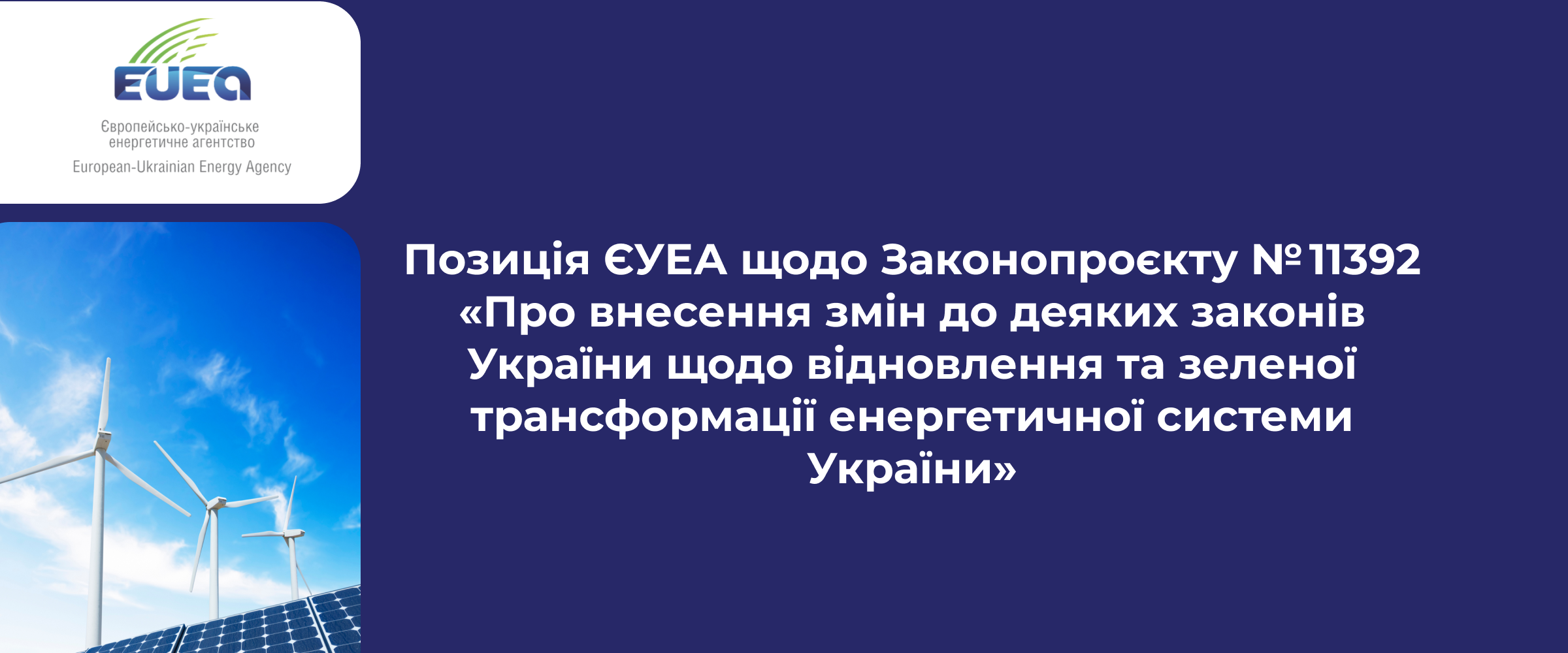 Позиція ЄУЕА щодо Законопроєкту № 11392 «Про внесення змін до деяких законів України щодо відновлення та зеленої трансформації енергетичної системи України» (про бронювання потужностей)