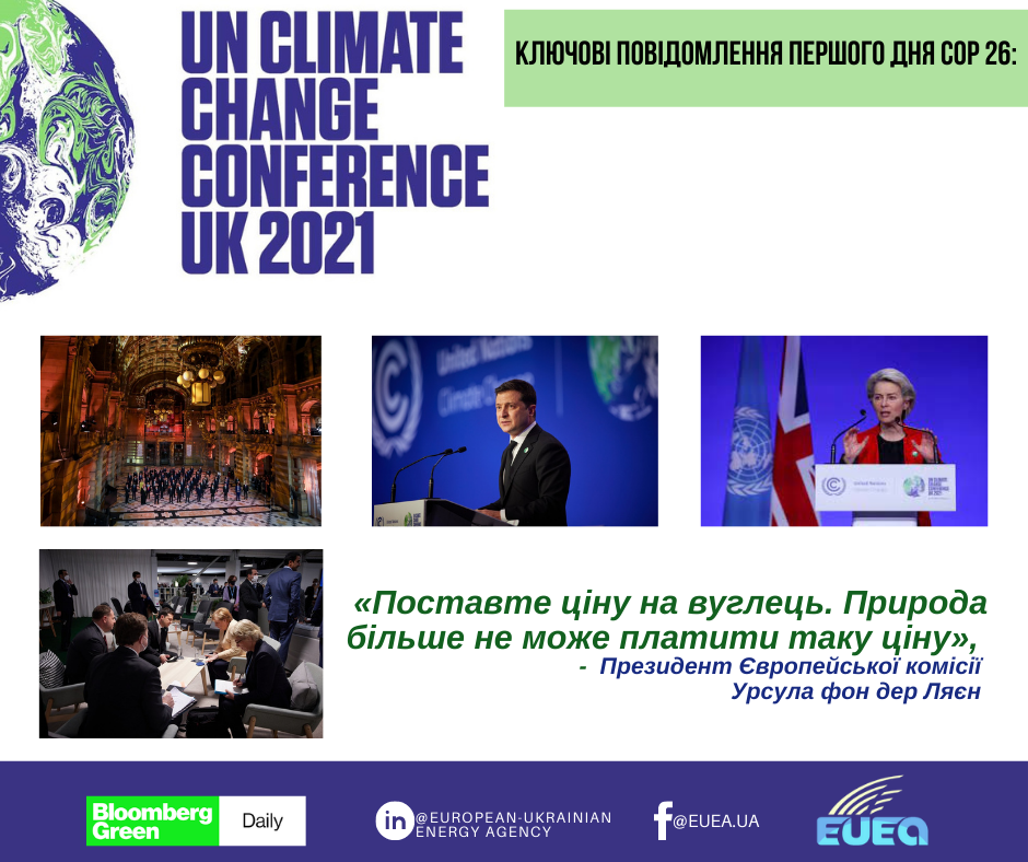 «Поставте ціну на вуглець. Природа більше не може платити таку ціну», – коментар президента Європейської комісії Урсули фон дер Ляєн вчора у перший день COP26.