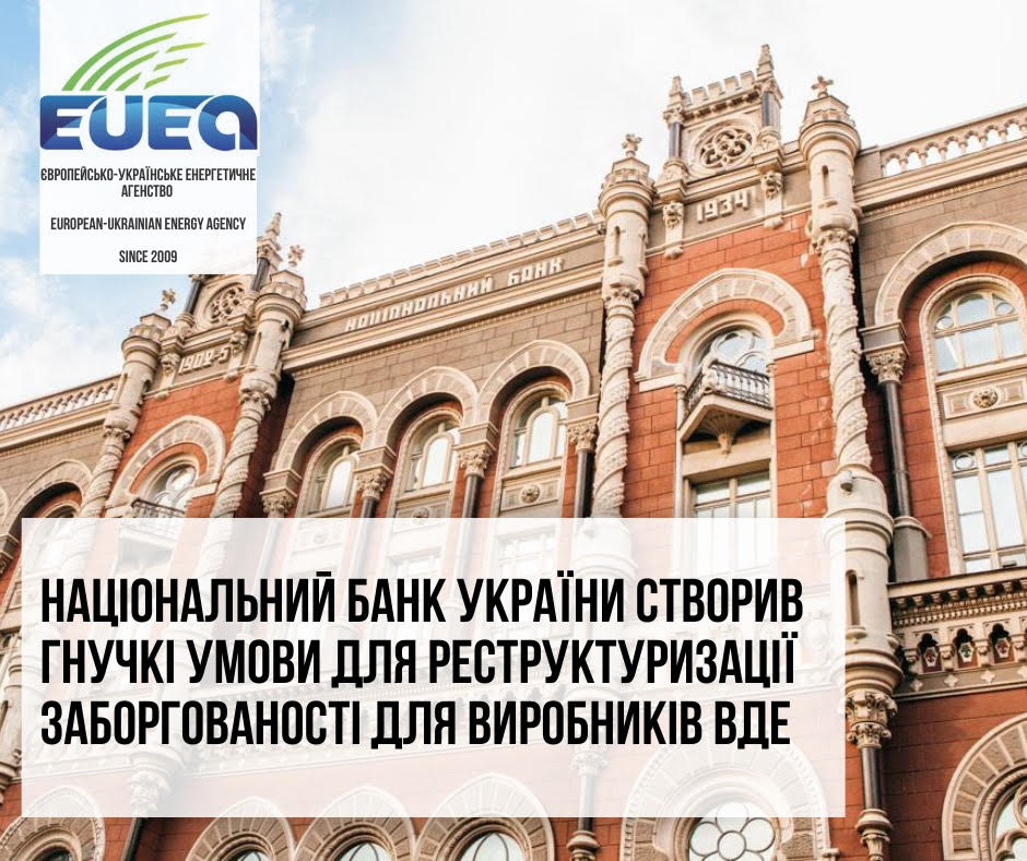 Національний Банк України створив гнучкі умови для реструктуризації заборгованості для виробників ВДЕ