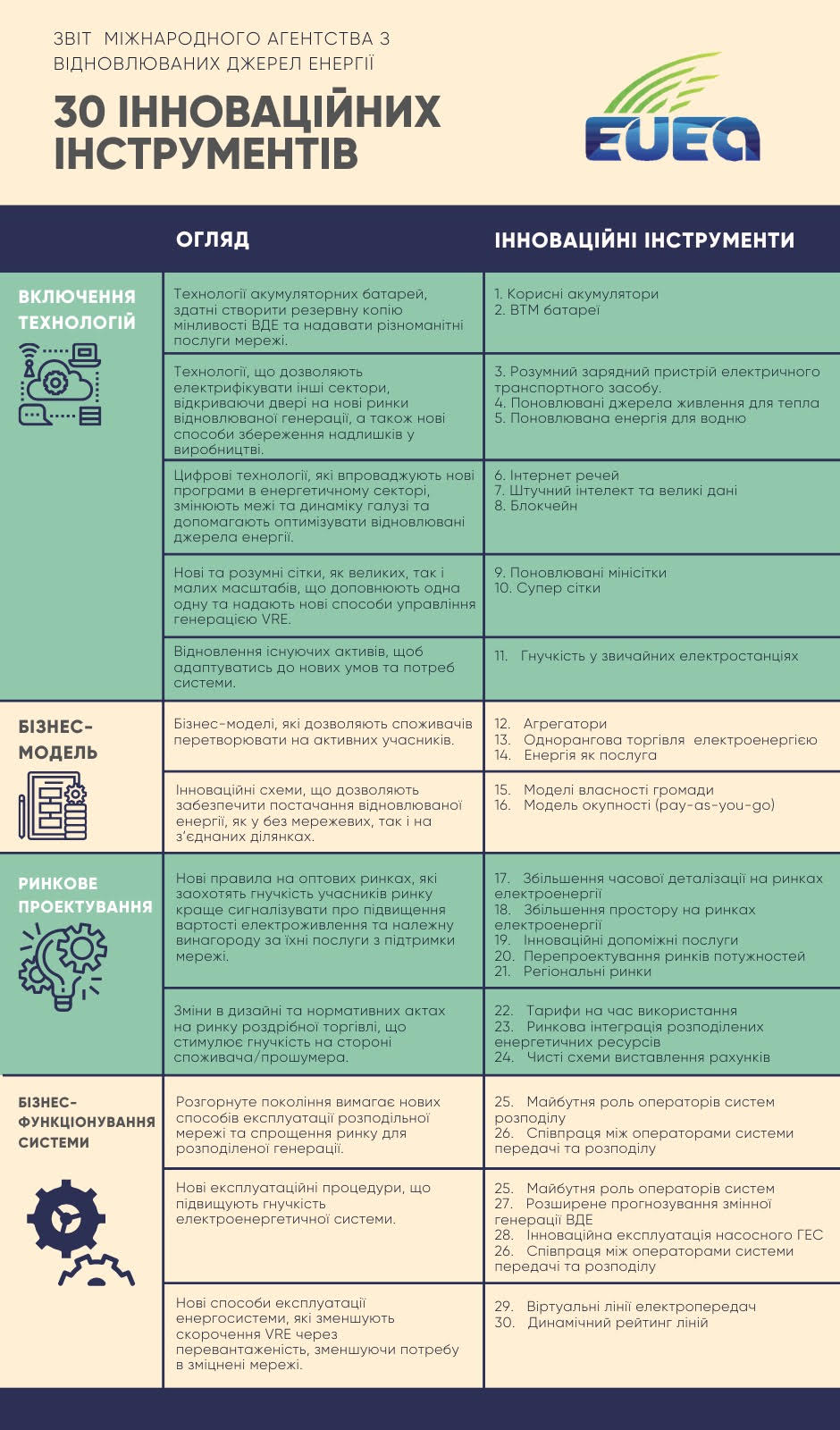 30 інноваційних інструментів (звіт Міжнародного агентства з відновлюваних джерел енергії)