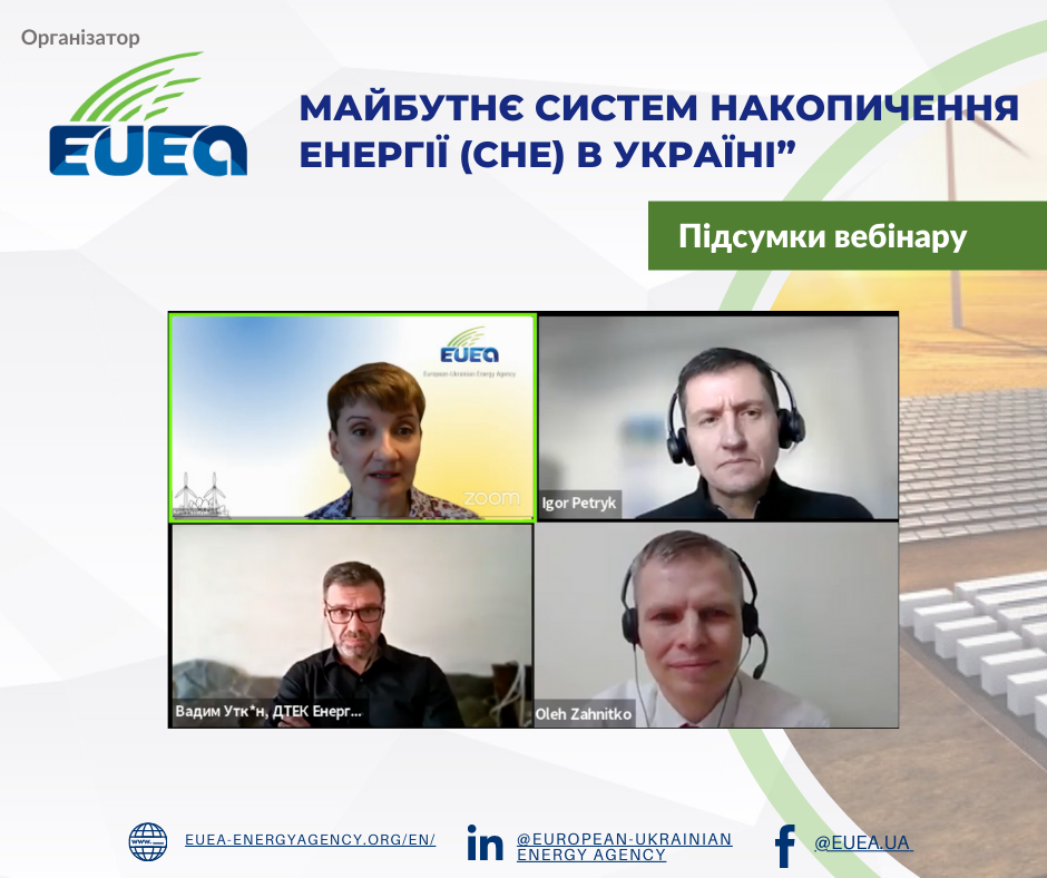 Підсумки вебінару ЄУЕА – “Майбутнє систем накопичення енергії (СНЕ) в Україні”