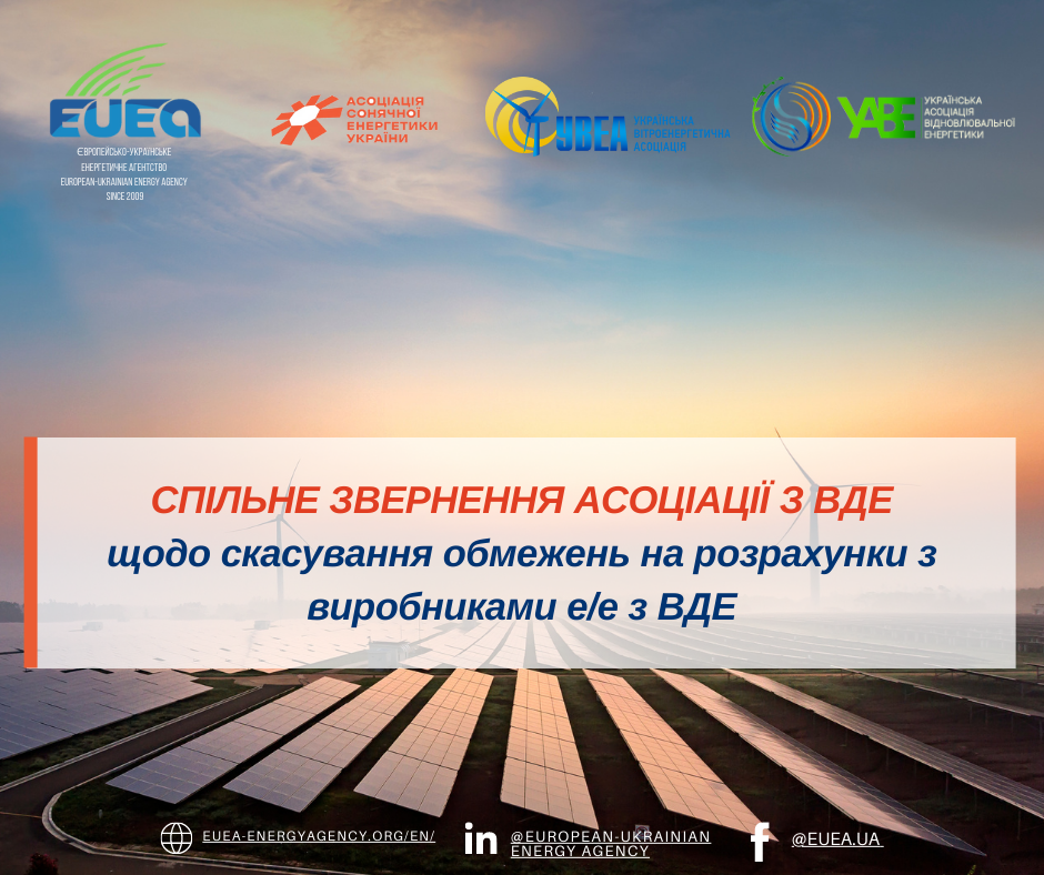 Сьогодні 2 червня 2022 року, ЄУЕА разом з УВЕА, УАВЕ, АСЕУ, що разом об’єднують більшість учасників ринку ВДЕ України та представляють міжнародних та українських інвесторів, звернулися до Президента України, Прем’єр-міністра України та Міністра енергетики України.